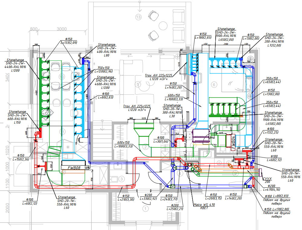 Роботи на об’єкті робилися у два етапи – спочатку реалізовувалася система опалення та водопостачання, а потім – вентиляція та кондиціювання.