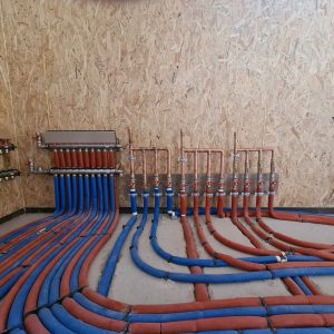 Перед початком проектування було виконано детальний теплотехнічний розрахунок для визначення тепловтрат і теплонадходжень будинку. За його результатами основним джерелом опалення та охолодження обрано тепловий насос “повітря-вода” Viessmann Vitocal 200 S із буферною ємністю для нагріву гарячої води об’ємом 200 літрів.