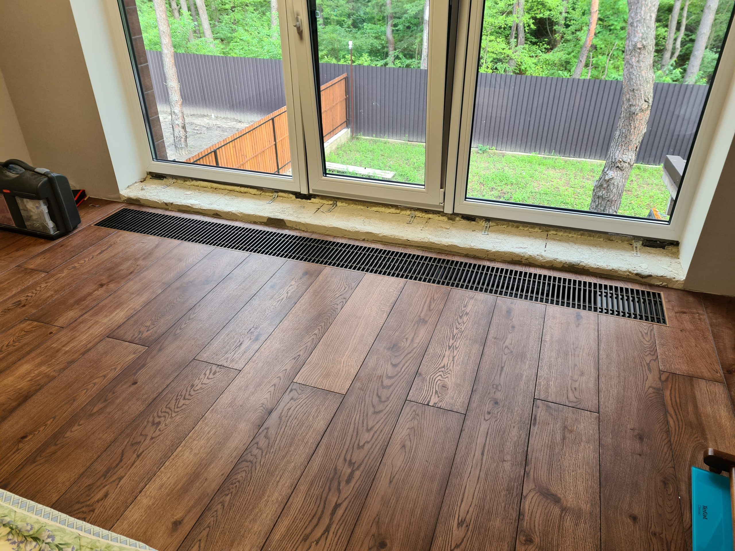 - Канальні фанкойли у вітальні (1 поверх) та майстер-спальні (2 поверх) з розподілом повітря через лінійні дифузори, інтегровані в дизайн.