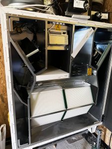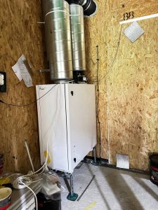 Встановлена припливно-витяжна система Komfovent із продуктивністю 700 м³/год, що забезпечує свіже повітря для всього будинку.