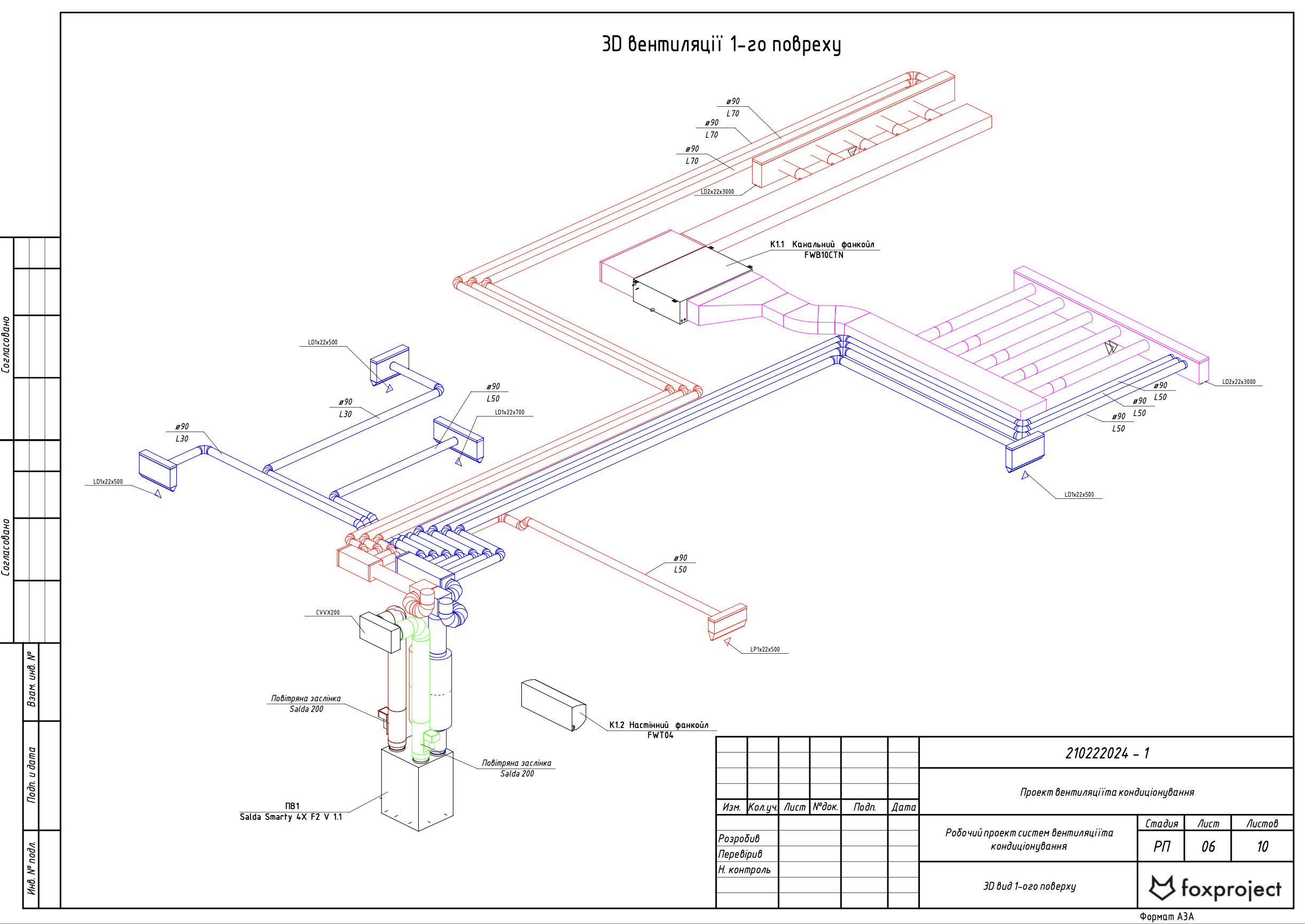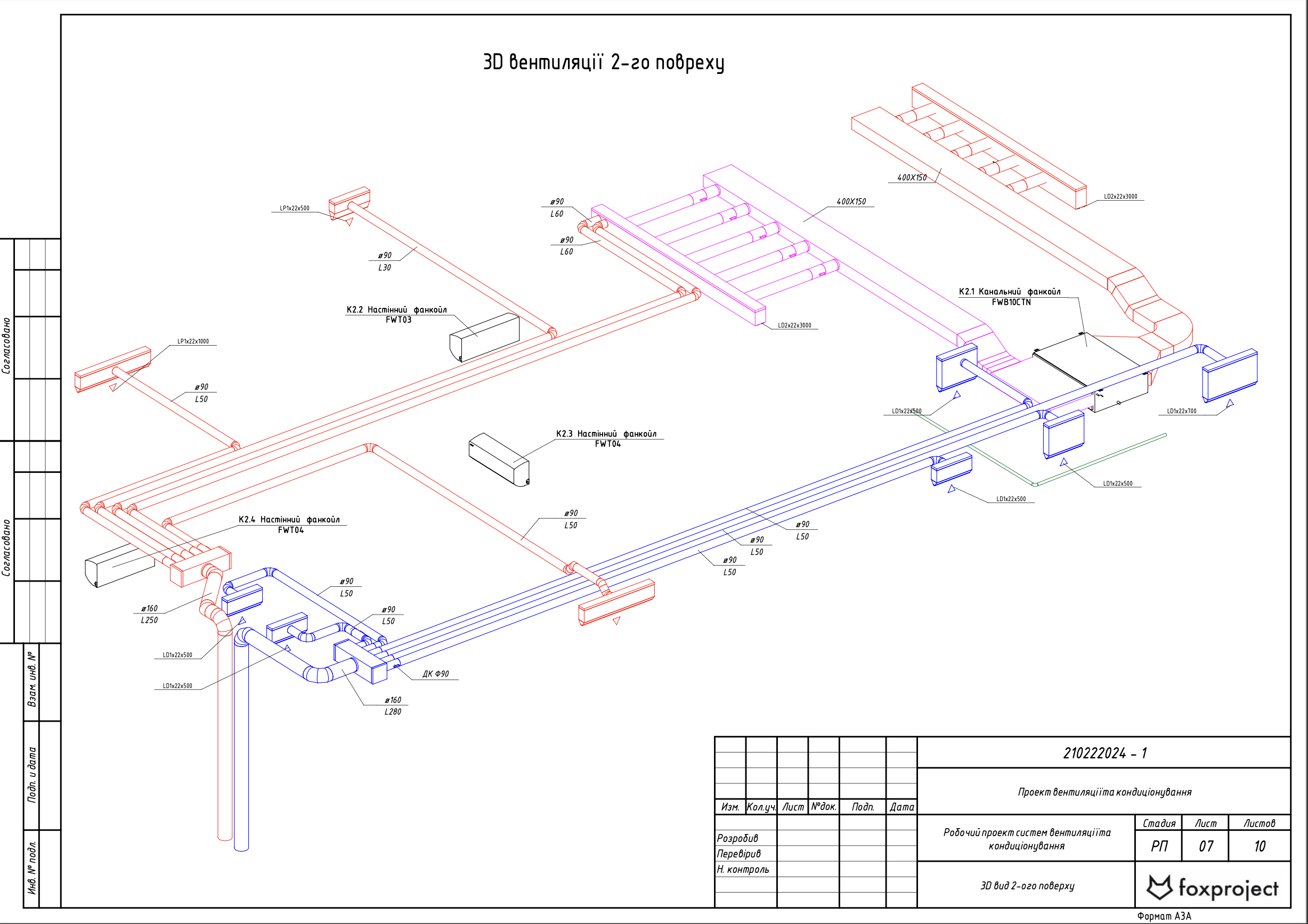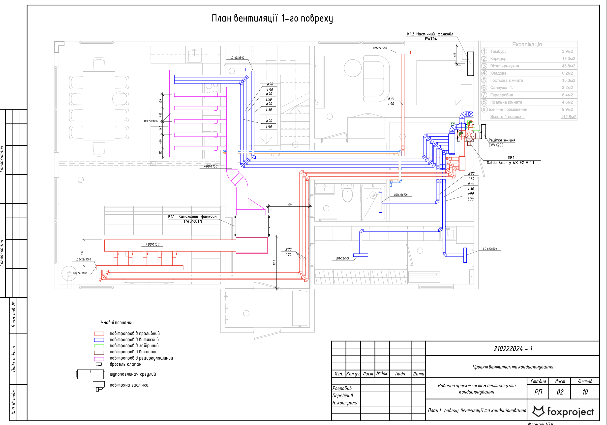 Для розподілу використані напівжорсткі повітропроводи Vents Quellent. Такий тип повітропроводів забезпечує:
