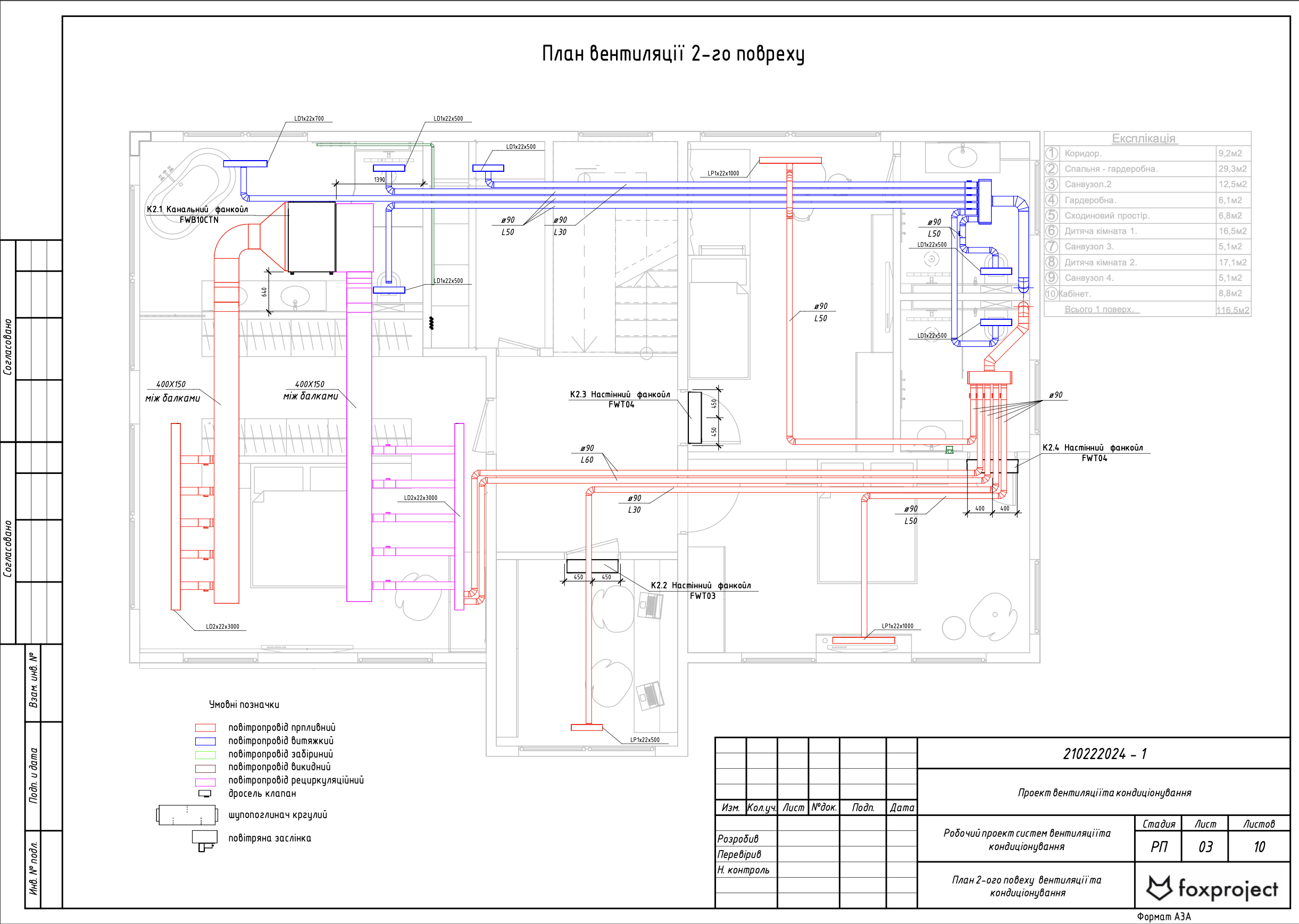 - Настінні фанкойли у дитячих кімнатах та гостьовій на першому поверсі, а також у дитячих кімнатах на другому поверсі.